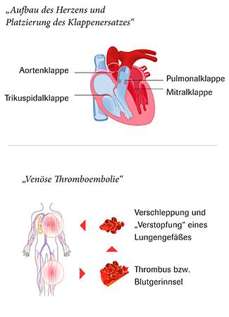 Ein Herzklappenersatz kann nach sowohl bei einem angeborenen als auch bei einem erworbenen Herzfehler (z. B. Herzklappenverkalkung) erforderlich sein. Diese modernen Hightech-Prothesen sind in ihrer Funktion sehr ausgereift, doch bleiben sie Fremdkörper, die die Bildung von Blutgerinnseln provozieren. Deshalb benötigen Patienten mit künstlicher Herzklappe eine lebenslange gerinnungshemmende Therapie.